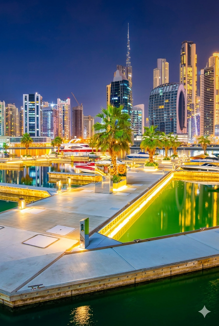 الصباح: جولة حرة في منطقة "دبي مارينا" و"جي بي آر" للاستمتاع بالمناظر البحرية والمشي في الممشى الشهير.