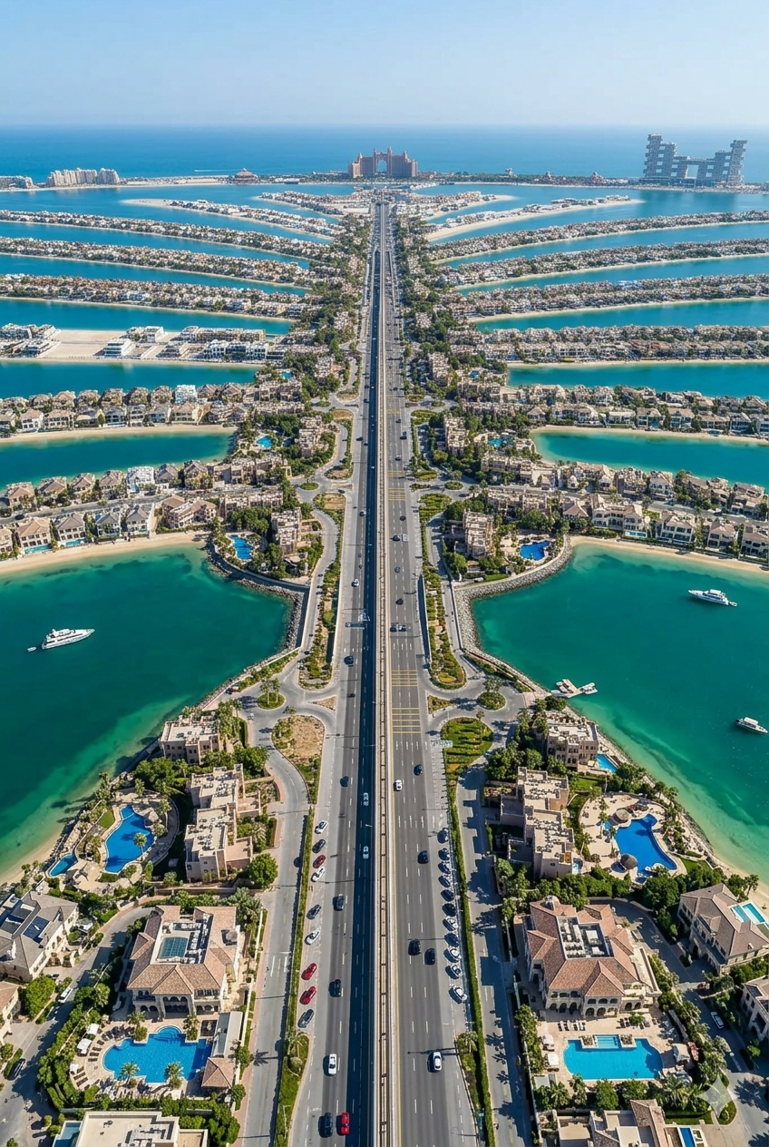 الصباح: التوجه إلى جزيرة "نخلة جميرا" وزيارة منصة المراقبة "The View at The Palm" لرؤية النخلة كاملة من الأعلى، أو قضاء وقت ممتع في مدينة الألعاب المائية "أكوافينتشر".